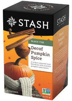 Le thé décaféiné aux épices de citrouille de Stash Tea regorge de saveurs aromatiques d'épices de citrouille.