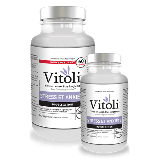 Il est recommandé de prendre VitoliMD Stress et Anxiété durant les périodes de stress et un jour avant, si possible. Les bénéfices devraient être ressentis dès la première journée, avec des résultats optimaux après deux semaines. Les problèmes de stress et d’anxiété peuvent se manifester par de la fatigue, des maux de tête, une transpiration abondante, des problèmes de concentration et de mémoire, des problèmes de sommeil et des troubles digestifs. Ils peuvent engendrer des problèmes physiologiques tels que la perte d’appétit, une prise de poids, de la tension artérielle, des troubles de l’humeur, une baisse du système immunitaire et la dépression (Alramadhan et al, 2012; Bruce S. McEwen, 2012).