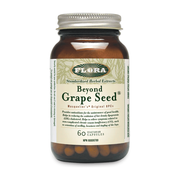 Vous voulez tirer profit de 50 ans de recherches en nutrition pour atténuer les signes du vieillissement prématuré? Le mélange Super pépins de raisin® de Flora contient de puissants antioxydants qui protègent les tissus et les cellules (connus sous le nom de proanthocyanidines oligomériques ou OPC) dérivés des pépins de raisin et un éventail complet de bioflavonoïdes extraits de myrtilles et de canneberges. Le résultat? Un supplément que l’on peut utiliser pour combattre les radicaux libres associés au vieillissement prématuré, au cholestérol LDL, aux problèmes circulatoires et à d’autres problèmes de santé.