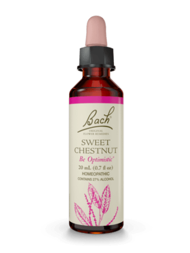 Le remède BACH®* Sweet Chestnut encourage le potentiel positif de l'optimisme. Faites face à des sentiments extrêmes de désespoir sans espoir avec un esprit clair. Reprenez le contrôle de votre vie quotidienne en toute tranquillité d'esprit.Indication
