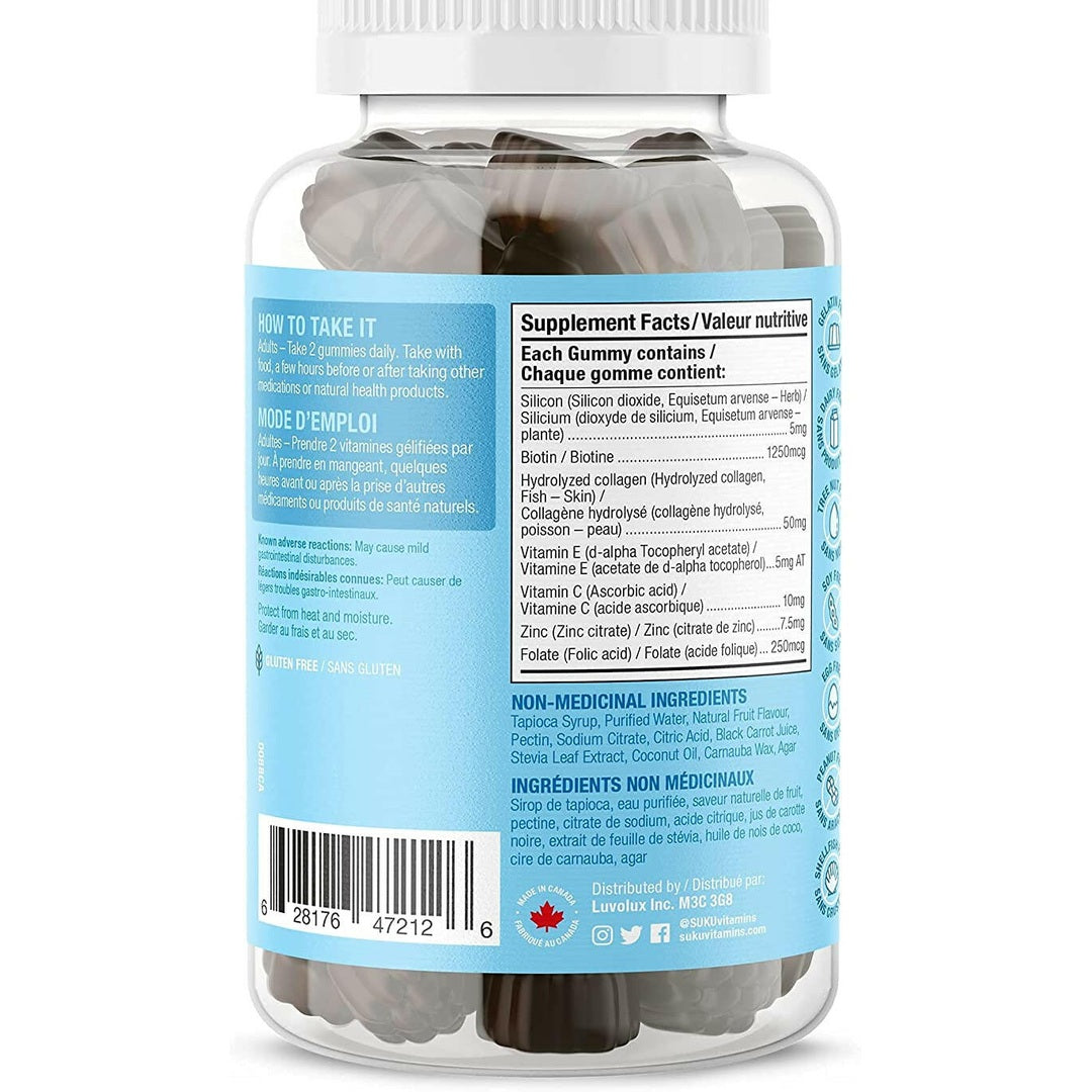 - Avec de la biotine, du collagène et de la silice pour des cheveux, une peau et des ongles magnifiques