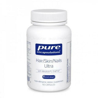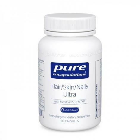 Hair/Skin/Nail Ultra fournit des éléments de base et des nutriments essentiels, tels que la biotine, le zinc et le silicium, pour favoriser l'élasticité et l'hydratation de la peau, la santé des cheveux, ainsi que la résistance et l'épaisseur des ongles. La biotine, le zinc et le silicium sont des cofacteurs intégraux de collagène et de kératine, qui régulent l'élasticité de la peau ; des niveaux optimaux de ces nutriments ont été associés à des cheveux, une peau et des ongles sains. Le zinc favorise également la fonction immunitaire de la peau, tandis que les études cliniques indiquent que la biotine peut aider à renforcer la structure de la kératine des ongles, en favorisant leur résistance et leur épaisseur. De même, la vitamine C et le cuivre sont des facteurs importants dans la formation et la réparation du tissu conjonctif. La vitamine C soutient la formation de collagène, tout en aidant à contrer les effets du stress oxydatif, ainsi que le complexe CoQ10 à libération prolongée. Le BioCell Collagen® est un collagène de type II de faible poids moléculaire, hydrolysé et dénaturé, breveté et ayant fait l'objet de recherches cliniques. Il fournit une matrice naturelle d'acide hyaluronique (HA), de sulfate de chondroïtine et de protéines de collagène de type II.
