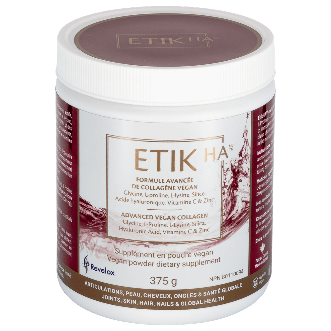 Revelox a conçu la formule EtikHA; un produit hautement concentré en précurseurs de collagène et en acide hyaluronique.