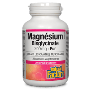Le Magnésium sous forme de bisclycinate de Natural Factors fournit 200 mg de ce minéral essentiel pour le soulagement des crampes musculaires. Ce magnésium sans OGM qui convient aux végétaliens est doux pour l’estomac et ne nécessite pas d’acidité gastrique pour être absorbé. Une seule capsule par jour peut rétablir les taux de magnésium nécessaires au soutien du métabolisme énergétique, des muscles, des os et des dents.