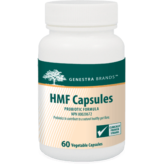 Les capsules HMF de Genestra fournissent plus de 2,5 milliards d'UFC par dose. Genestra propose des capsules HMF sous forme de formule probiotique d'entretien à long terme à faible concentration qui fournit deux souches de Lactobacillus acidophilus d'origine humaine exclusive, Bifidobacterium bifidum et Bifidobacterium animalis subsp. lactis, pour aider spécifiquement à rétablir et à maintenir une microflore intestinale normale. Les probiotiques de Genestra sont des souches d'origine humaine, éprouvées lors d'essais cliniques sur l'homme.