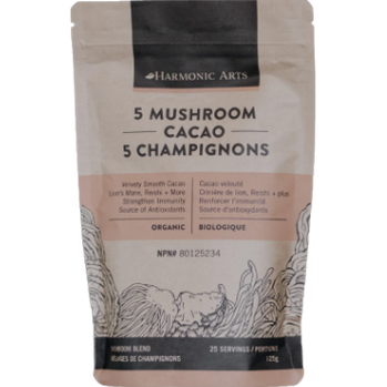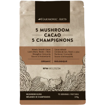 Formulé par Harmonic Arts, le cacao aux 5 champignons favorise la santé globale et le système immunitaire.