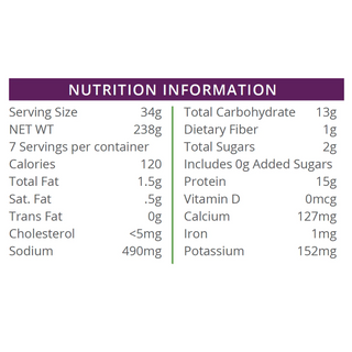 Mélange de protéines (caséinate de calcium, gélatine hydrolysée), pâtes enrichies (farine de semoule de blé dur [blé], niacine, sulfate ferreux [fer], mononitrate de thiamine, riboflavine et acide folique), protéines végétales texturées (farine de soja), amidon de maïs modifié, crème sure (crème cultivée, lait écrémé en poudre), protéines de soja et de maïs hydrolysées, extrait de levure, arôme naturel (sucre, sel, extrait de levure autolysée), sel, huile de tournesol, carottes déshydratées, mélange de gommes (gomme arabique, gomme xanthane, gomme guar), maltodextrine, inosinate disodique, guanylate disodique, chlorhydrate de thiamine, phosphate tricalcique, arôme artificiel, poudre de carotte, poudre de tomate, poudre d'oignon, persil déshydraté, poudre de poireau, poudre d'ail, épices (laurier, céleri, thym), lécithine de soja.