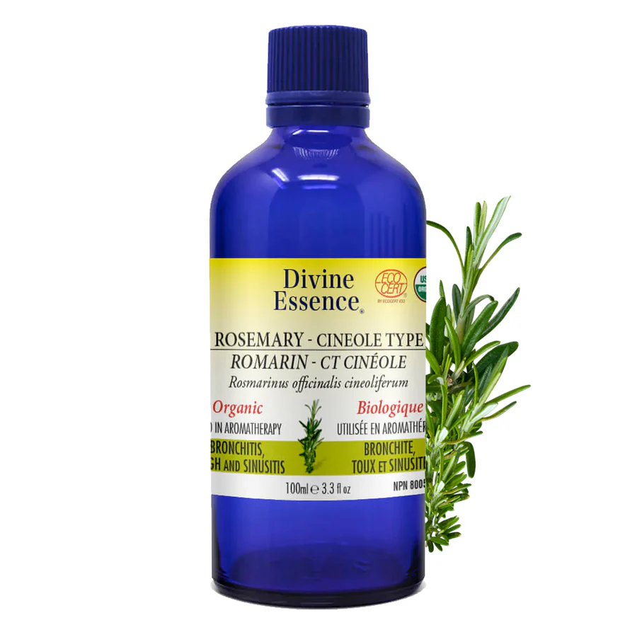 L’huile essentielle de Romarin CT Cinéole est utilisée en aromathérapie pour soulager les symptômes de bronchite chronique, sinusite, toux ainsi que la fatigue générale et l'épuisement.