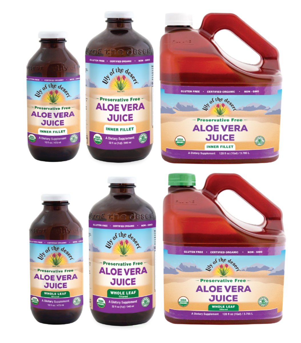 Profitez de tous les 200 composants biologiquement actifs de nos jus d'Aloe Vera réguliers sans les conservateurs. Notre jus d'Aloe Vera sans conservateur fournit des acides aminés essentiels, des vitamines, des minéraux et des enzymes. Le jus d'aloe vera sans conservateur Lily of the Desert a été le premier sur le marché en tant que jus d'aloès biologique certifié USDA et c'est maintenant notre produit n ° 1! De plus, sans conservateurs, vous profiterez d'un goût plus doux dans ces jus.