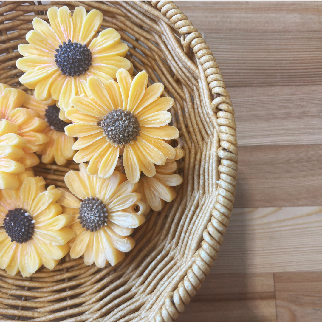 Laissez-vous envelopper par la chaleur lumineuse de Tournesol, une chandelle faite à la main avec amour.