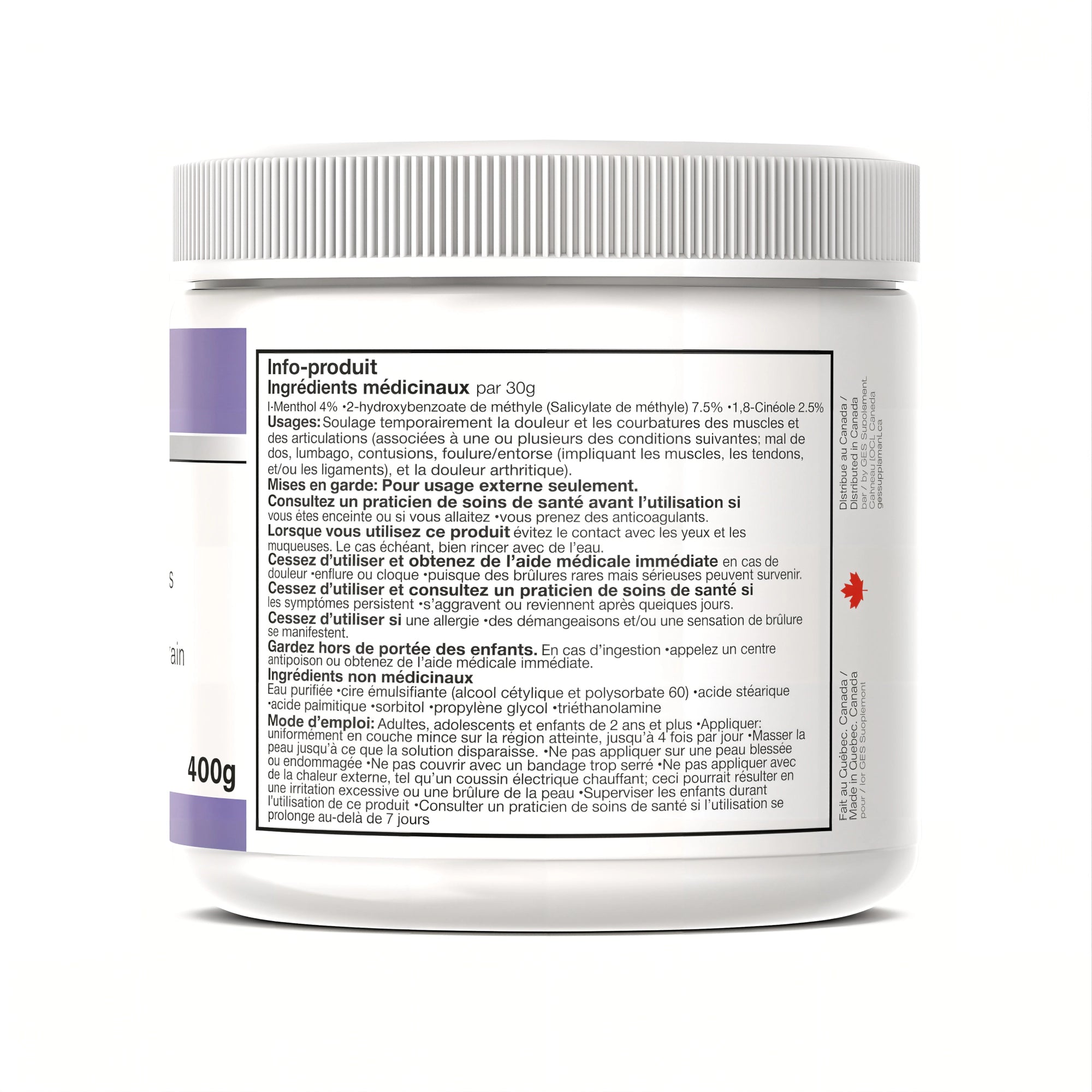 Nous nous efforçons de fournir des informations précises sur les produits, mais les fabricants peuvent parfois modifier leurs listes d'ingrédients, ce qui peut entraîner des différences entre les informations affichées sur notre site web et les informations figurant sur l'emballage du produit. Nous vous recommandons de ne pas vous fier uniquement aux informations présentées sur le site et de toujours lire attentivement les étiquettes, les avertissements et les instructions avant d'utiliser ou de consommer un produit. Pour plus d'informations sur un produit, veuillez contacter le fabricant. Les informations fournies sur ce site sont à titre de référence seulement et ne remplacent pas les conseils d'un professionnel de la santé agréé. Vous ne devriez pas utiliser ces informations pour diagnostiquer ou traiter un problème de santé ou une maladie. Contactez immédiatement un professionnel de la santé si vous soupçonnez avoir un problème de santé.