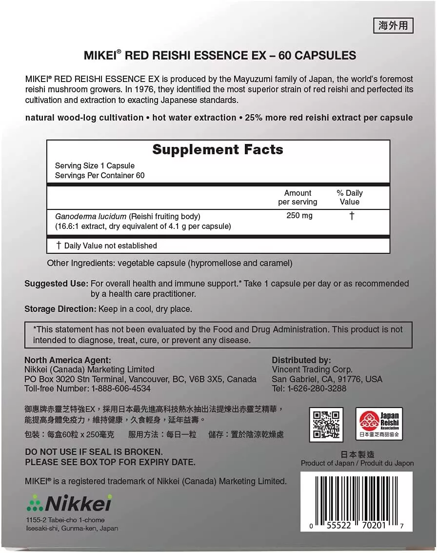 Pourquoi choisir Mikei - Reishi Rouge Essence EX – Extra-Fort (250 mg / 60 capsules)