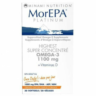 MorEPA Platinum est un supplément nutritionnel avec une haute concentration (90%) d’oméga-3 (764 mg EPA + 236 mg DHA + 25 mcg vitamine D3) qui contribue rapidement à un index oméga-3 équilibré.