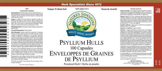 Ingrédients médicinaux: Chaque capsule contient 465 mg de cosses de Plantago ovata (psyllium). Ingrédients non médicinaux: gélatine.