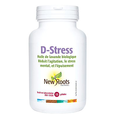 Les gélules de D‑Stress de New Roots Herbal produisent des effets de détente tant du corps que de l’esprit.