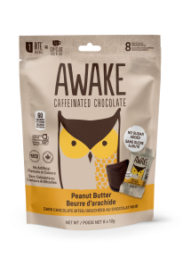 Sachet AWAKE sans sucre ajouté au chocolat noir et au beurre de cacahuète.