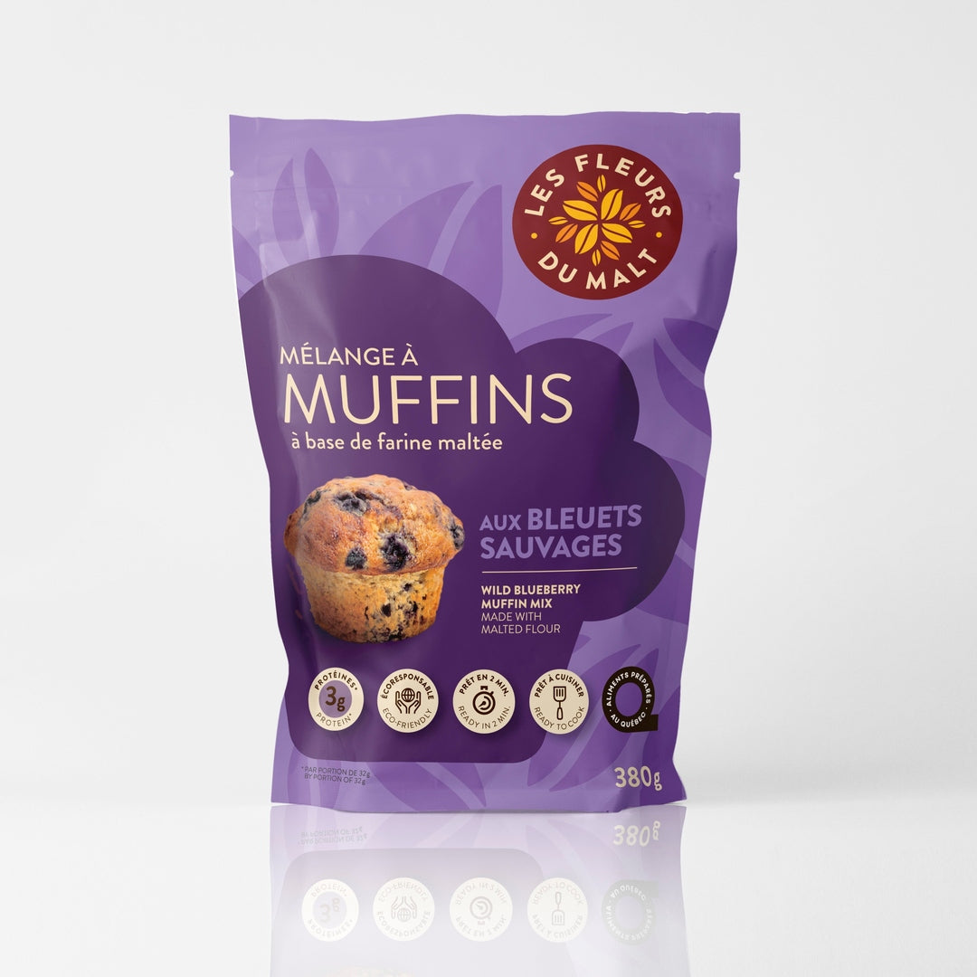 Ingrédients : Farine de blé non blanchie, sucre, farine de drêche (orge et/ou blé), bleuets sauvages déshydratés, poudre à pâte, sel.