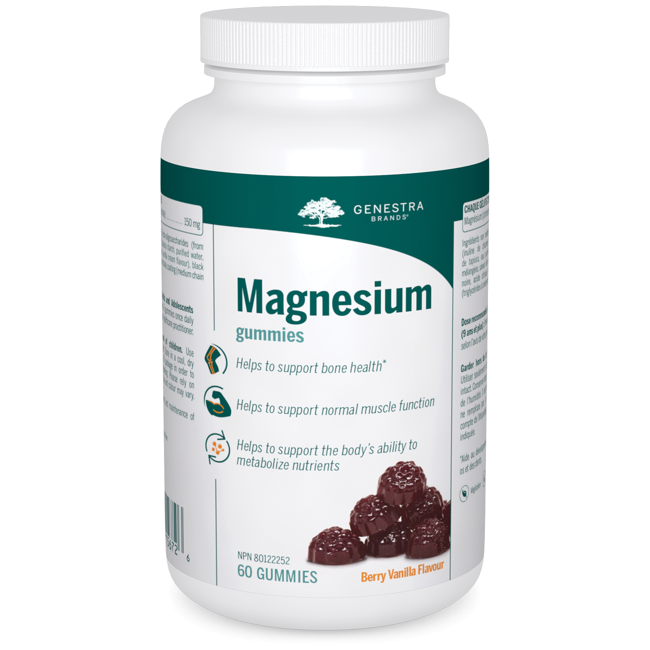 Avec chaque bonbon contenant 150 mg de magnésium, ces délicieux bonbons gélifiés à la vanille et aux baies de Genestra offrent une option pratique de supplémentation pour que vous puissiez répondre à vos besoins quotidiens en magnésium.