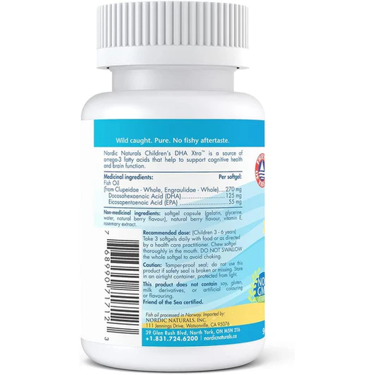 Children's DHA Xtra est une source puissante d'oméga-3 DHA, un nutriment essentiel au bon développement et qui joue un rôle clé dans tous les aspects de la santé, y compris le fonctionnement du cerveau et des yeux.
