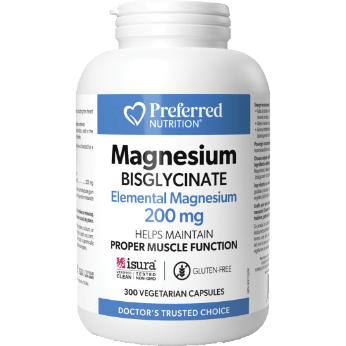 Le bisglycinate de magnésium de Preferred Nutrition est une formule douce à base de magnésium qui contribue au maintien des os, des dents, du métabolisme des nutriments et de la fonction musculaire, y compris du cœur.