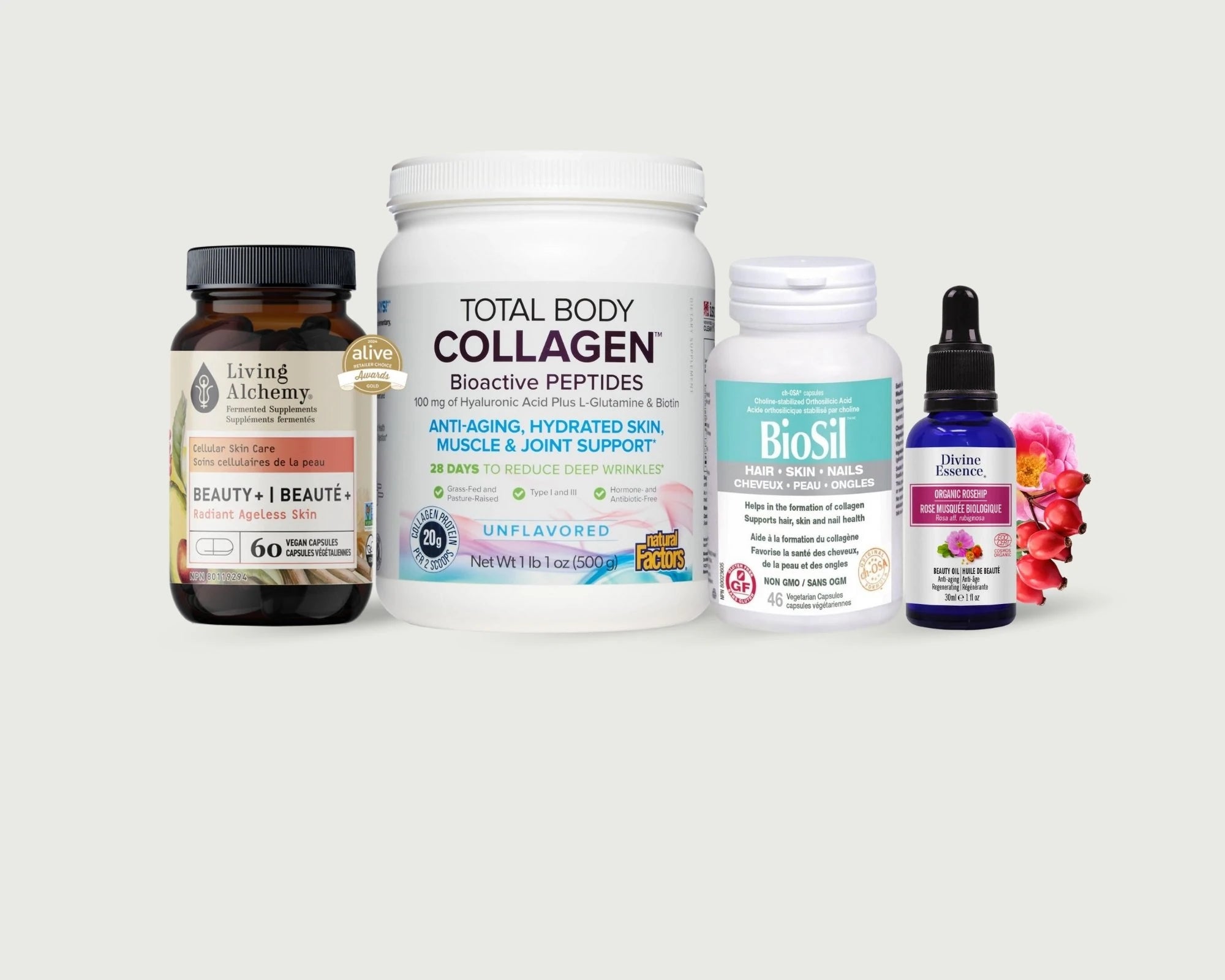 Activer (Biosil) : La star du kit. Biosil est cliniquement prouvé pour « activer » les enzymes productrices de collagène de votre corps, menant à une réduction des ridules et à des cheveux et ongles plus forts.
