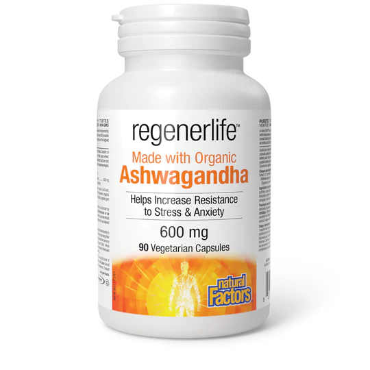 Regenerlife Ashwagandha contient de l'Ashwagandha KSM-66 cliniquement étudié, utilisé en phytothérapie comme adaptogène pour aider à augmenter l'énergie et la résistance au stress.