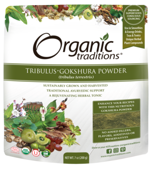 Le Tribulus, communément appelé Puncture Vine ou Gokshura, est une herbe tonifiante clé de l'Ayurveda traditionnel. L'herbe est à la fois rafraîchissante et apaisante et est donc utilisée pour l'irritation des muqueuses et comme tonique rajeunissant. En Ayurveda, il est souvent combiné avec de la poudre d'Ashwagandha comme tonique quotidien pour la vitalité masculine. À combiner avec la poudre Shatavari de Organic Traditions comme tonique quotidien pour la vitalité féminine. Combinez Gokshura avec la poudre Ashwagandha de Organic Traditions dans un rapport 1: 1 jusqu'à deux fois par jour pour un tonique particulièrement revitalisant, énergisant et rajeunissant. Selon les principes énergétiques de l'Ayurveda, Gokshura est doux et amer dans l'énergie du goût Rasa, se refroidissant en action selon Virya et équilibrant pour toutes les constitutions dosiques Vata Pitta et Kapha avec une capacité particulière à équilibrer Vata. Elle est considérée comme une merveilleuse herbe quotidienne pour favoriser le bien-être général, la vitalité et la santé. <br> <br> Info zoologique <br> Pays d'origine: Inde <br> Ingrédients: Poudre certifiée biologique de Tribulus Gokshura <br> Nom botanique: Tribulis terrestris <br> Forme: poudre. <br> <br> Information sur les allergènes <br> Produit dans une usine qui conditionne des noix (amandes, noisettes et noix de cajou). L'installation est sans produits laitiers, sans gluten, sans soja et sans arachides. <br> <br> Informations sur le stockage