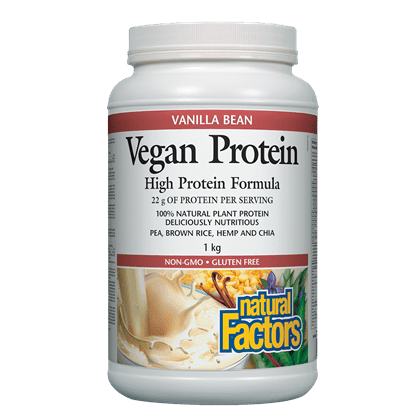 Les protéines végétaliennes de Natural Factors allient des protéines végétales naturelles à 100 % offrant un profil équilibré des acides aminés nécessaires à la formation d’os, de muscles et de cartilage sains. Chaque portion fournit 22 g de protéines issues de légumineuses, de céréales biologiques et de graines sans OGM. Les protéines végétaliennes sont édulcorées de façon naturelle et ne contiennent ni additif ni gluten ajouté.