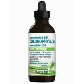 La chlorophylle extraite de la luzerne de land art, dosée à 100 mg de chlorophylline par 5 ml, possède plusieurs vertus. Diluée dans un verre d'eau, la chlorophylle est le breuvage santé purifiant par excellence. Aussi disponible moins concentrée, avec arôme de menthe, pomme ou eucalyptus.