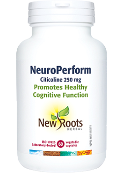 Chaque capsule de New Roots NeuroPerform Citicoline contient 250 mg de citicoline, une substance cliniquement étudiée, pour un soutien cognitif essentiel au vieillissement cérébral, ainsi que 14 mg de choline .