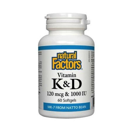 Natural factors - Vitamine k + d (120 mcg & 1,000 ui)