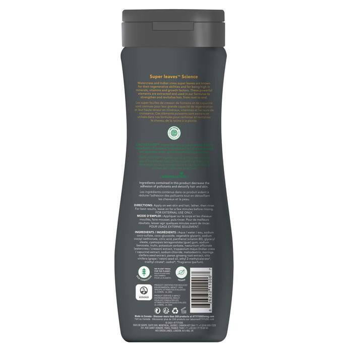 Le 2 en 1 Sport d’ATTITUDE est enrichi d’extraits de ginseng et d’huile de pépins de raisin riche en antioxydants et peut être utilisé comme shampoing et comme gel douche.