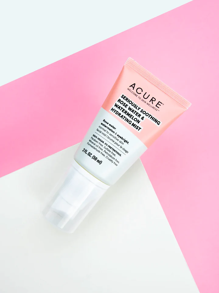 Brume apaisante pour une hydratation instantanée et un éclat rosé.