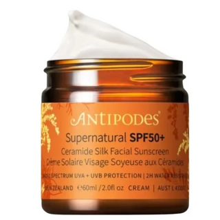 100 % d origine naturelle, cette crème solaire visage SPF50+ à base de zinc offre une protection à large spectre anti-UVA et UVB et des bénéfices anti-âge grâce à des céramides et des huiles végétales nourrissantes.