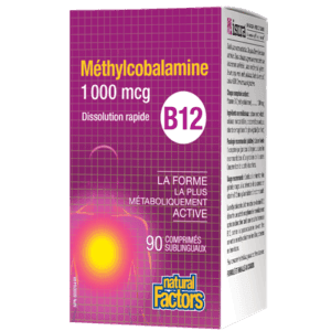 Méthylcobalamine B12 de Natural Factors se présente sous la forme de comprimés sublinguaux – pas besoin d’injections ni d’avaler des pilules ! Cette préparation évoluée, disponible en différents dosages, est parfaite pour les personnes qui recherchent les formes les plus bioactives et de qualité supérieure de ce nutriment clé pour éviter une carence en vitamine B12 et pour maintenir une bonne santé.