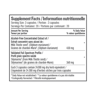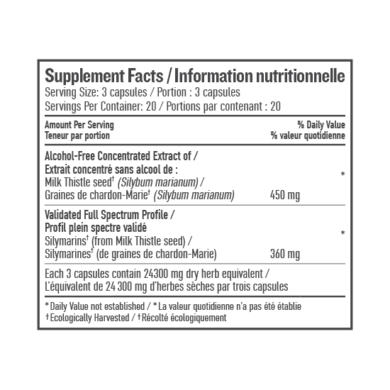 Les graines de chardon-Marie favorisent le bon fonctionnement du foie et procurent un puissant soutien antioxydant. Botanica effectue la concentration de son extrait de chardon-Marie à faible température et à basse pression afin de préserver la silymarine, un important élément phytochimique. Ce dernier favorise une saine production des cellules du foie ainsi qu’un bon métabolisme du cholestérol.