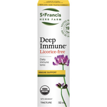 Deep Immune sans réglisse soutient et fortifie le système immunitaire en rétablissant l'équilibre inné du corps grâce à l'action synergique de sept puissantes herbes adaptogènes qui ont un long pedigree dans la tradition TCM du qi défensif, qui considère la maladie en termes militaires comme une force d'invasion qui doit être repoussée.