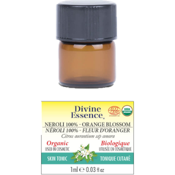 L'huile essentielle de Néroli est utilisée en aromathérapie cosmétique pour ses propriétés toniques et anti-âge et parfume vos recettes. Issue de Divine Essence, l'huile essentielle de Néroli 100 % Fleur d'Oranger délivre un parfum frais, floral et animal, idéal pour une utilisation topique par les adultes.