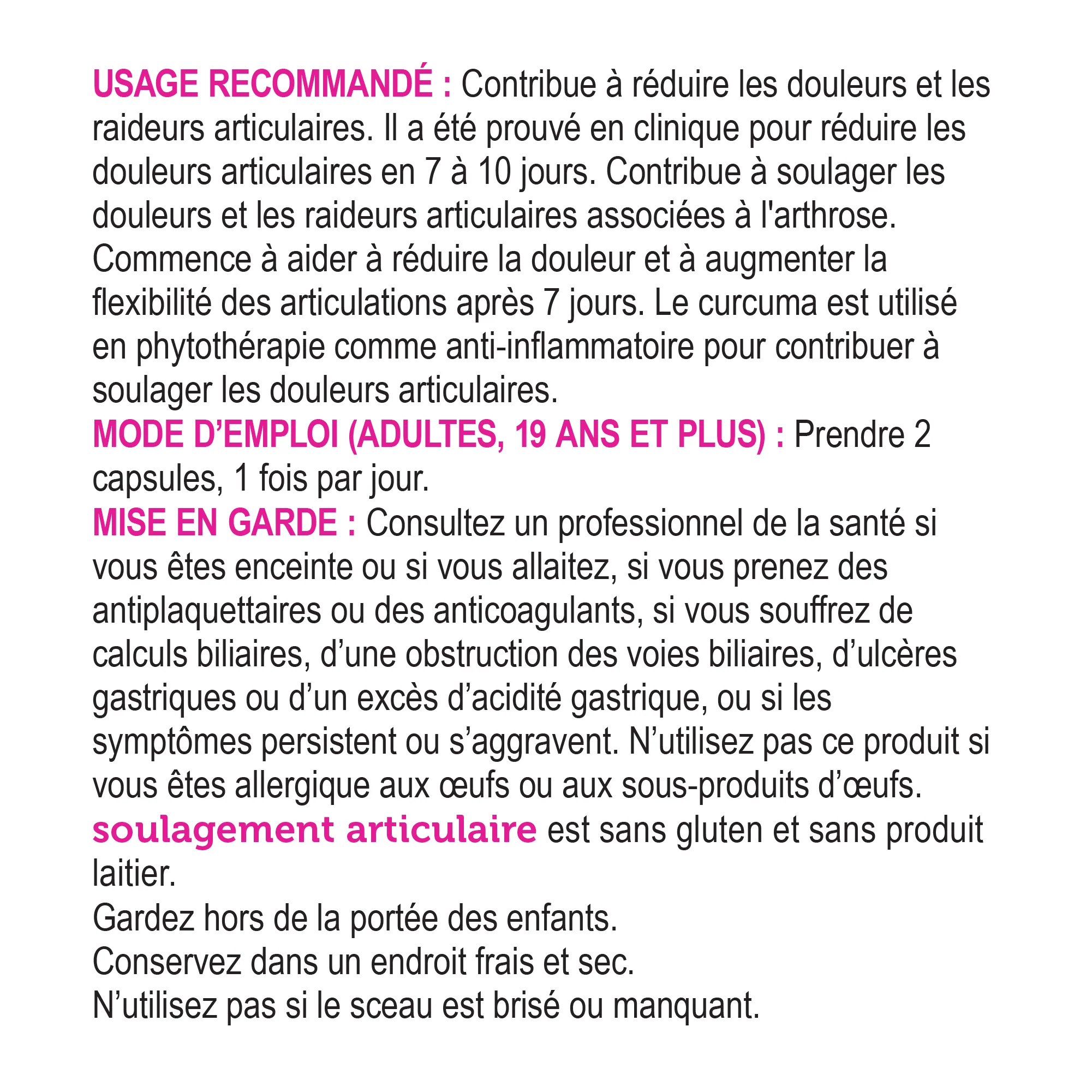 Nous y avons également inclus deux types de curcuma, aux puissantes propriétés anti-inflammatoires pour calmer les gonflements douloureux. Vos tâches quotidiennes seront plus de faciles à accomplir.