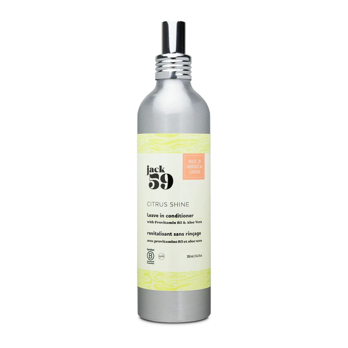Le revitalisant sans rinçage Citrus Shine de Jack59 est une formule légère au pH équilibré conçue pour démêler, prévenir la casse et infuser une brillance intense. C'est le meilleur choix pour ceux qui cherchent un soin sans rinçage pour cheveux fins ou un soin pour cheveux bouclés naturel, végétalien et sans plastique.