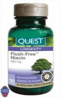 La niacine sans rinçage Quest est un supplément de vitamine B3 de haute qualité. La niacine (une forme de vitamine B3) est prescrite depuis longtemps pour le traitement des maladies cardiovasculaires telles que les taux élevés de cholestérol et de triglycérides et la mauvaise circulation. La niacine améliore également le métabolisme du glucose, des lipides, des protéines et des stérols. L'effet secondaire flushing de la niacine qui peut se produire aux doses qui peuvent être nécessaires pour un effet thérapeutique s'avère souvent troublant ; cependant, en combinant la niacine avec l'inositol (inositol hexaniacinate), ce supplément confère le benefits de niacine sans les effets secondaires désagréables.